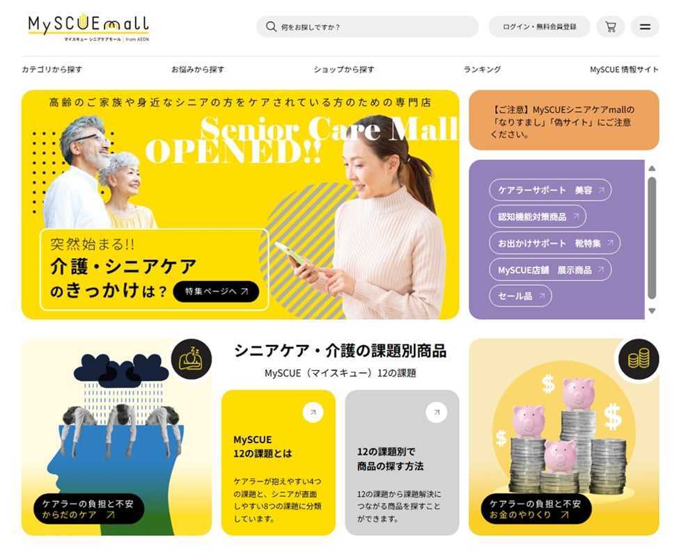 シニアケア・介護に関わる方々(ケアラー)や高齢者の暮らしを支える商品・サービスに特化した新しいECモールです。